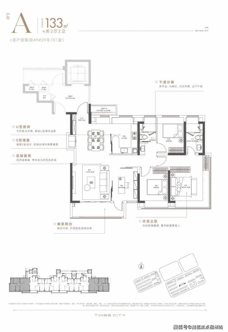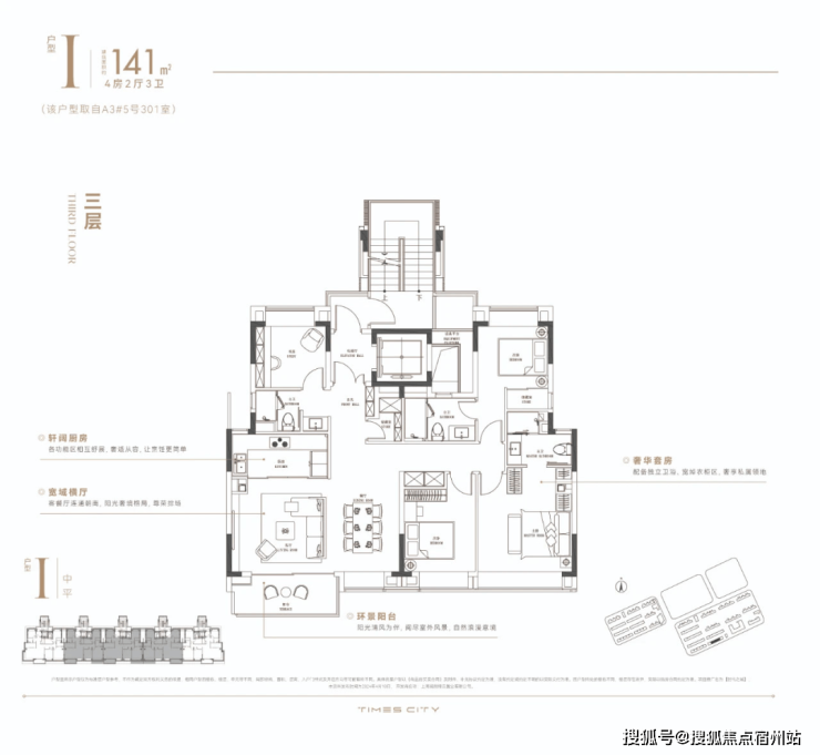 华润置地时代之城高层产品将百平上下的改善户型做出了轻奢级的居住体验,把约133㎡的改善四房做出了豪宅的尺度感。