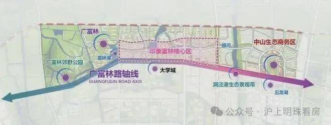 松江新城广富林核心区是“10+x”空间战略新城内五个重点片区之一,是松江区十四五新城重点发力打造的,具有集中度、显示度的重点区域之一。广富林板块集聚新潮消费与滨水生活的松江新城商业中心,北部产学研城融合发展带。于城市文脉之上,臻享一座城市的繁华新意。