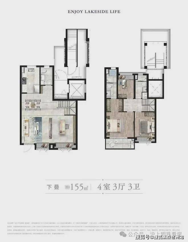在产品打造上,项目构建全龄段产品矩阵,涵盖建面约89-130㎡三至四房高层与建面约145-155㎡叠加别墅。高层户型南北通透,全卧室飘窗搭配大面宽阳台,采光通风极佳,精装交付配备中央空调、地暖、新风系统,选用一线品牌建材,首付仅需约87万即可上车。叠墅产品更是亮点纷呈,下叠拥有私属庭院与地下多功能空间,上叠享有星空露台,得房率高达85%,满足终极改善需求。值得一提的是,项目引入上海市物业服务百强第八名的古北物业,以专业细致的服务,为业主生活增添保障。