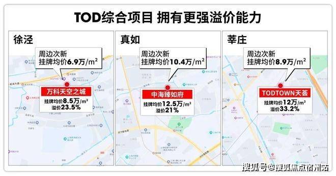 相比普通楼盘,TOD综合项目本身也有较强的溢价能力,莘庄天荟、万科天空之城等TOD项目都已给出有说服力的结论。