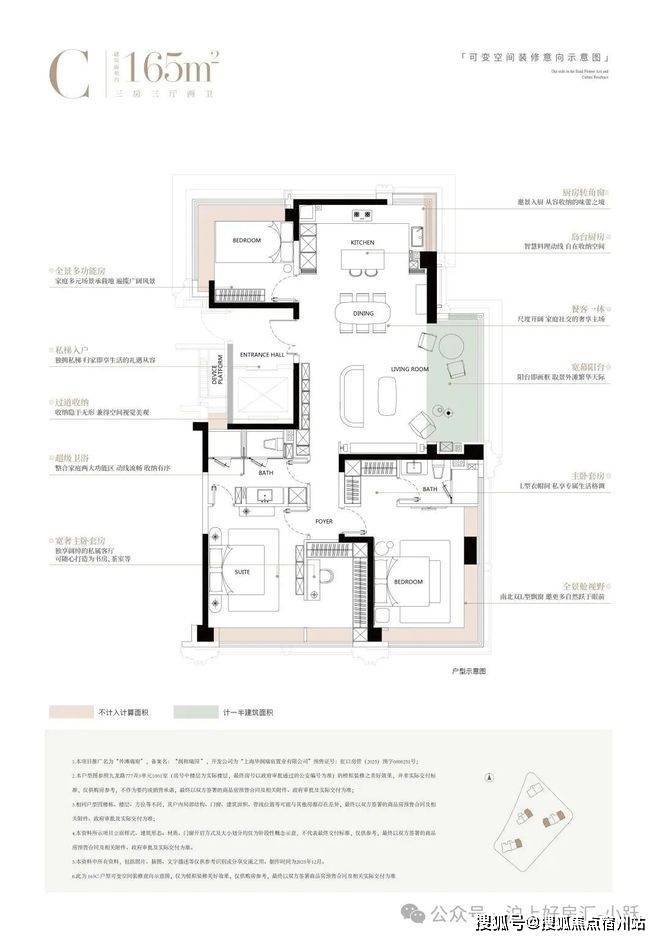 约165㎡户型超越行业常规,提供了空间、皮肤、功能、艺术化四大定制系统