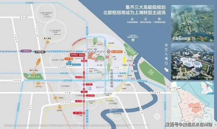 吴淞创新城北部枢纽以高铁北站为核心,打造“三江交汇、上海之门”的标志形象。作为上海科创中心主阵地的核心承载区,吴淞创新城将成为继张江、金桥之后的又一科创重地,势必为区域导入大量高质产业人群。