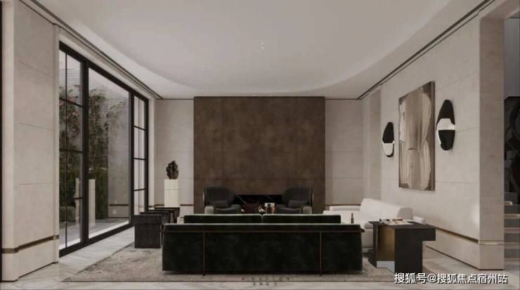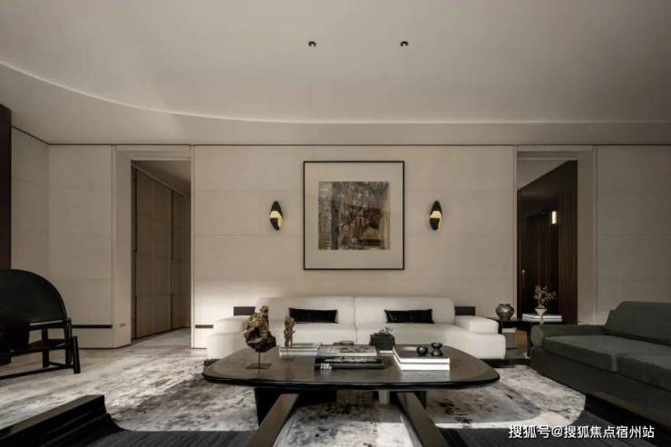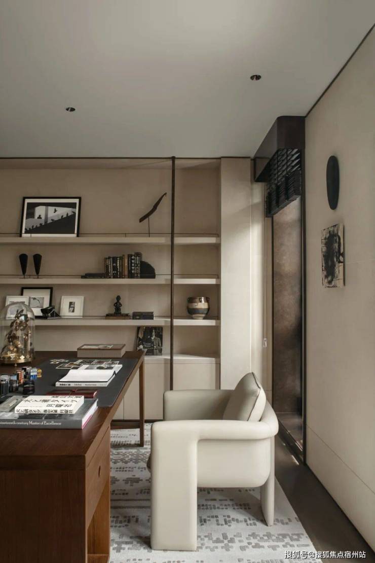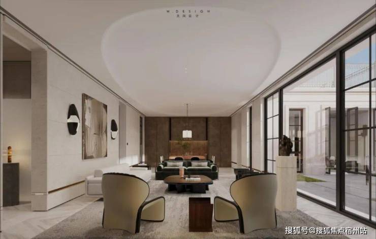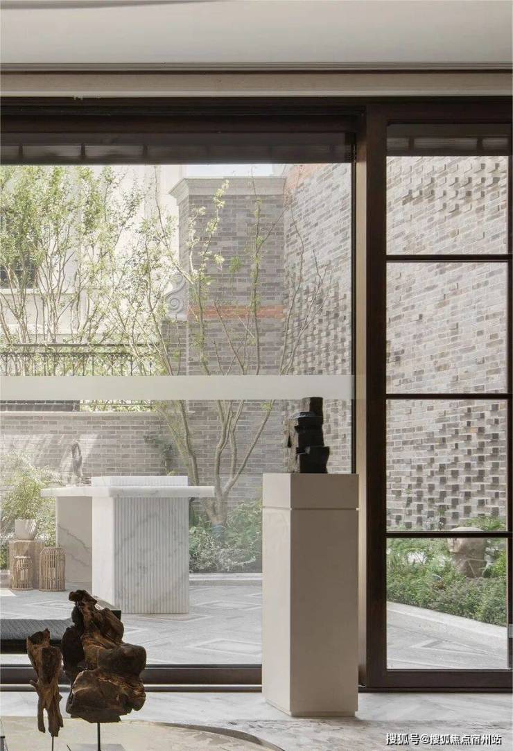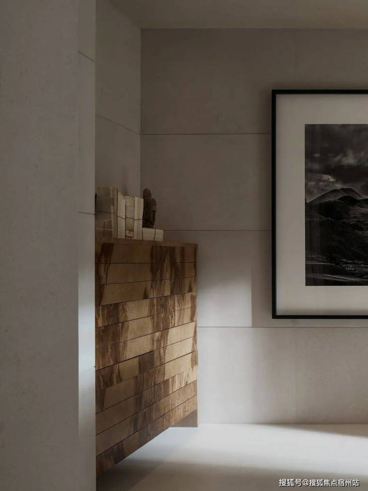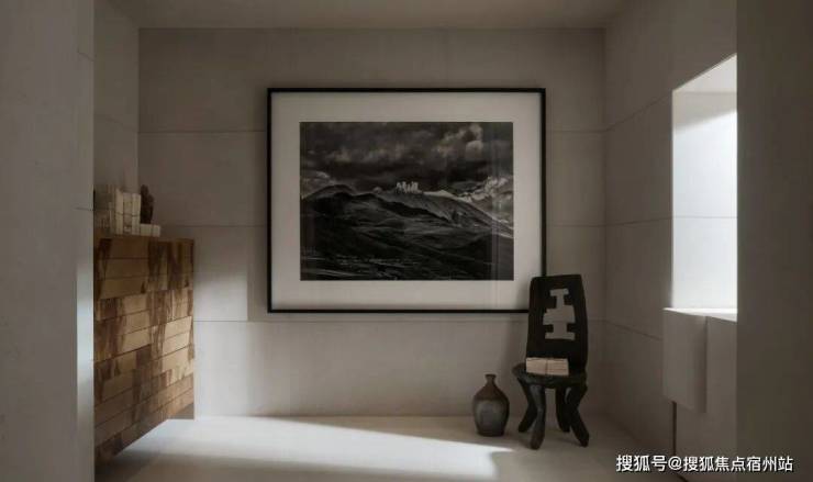 顺着私人藏品空间往右手边走,是一间彰显收藏品味与涵养的小型美术馆。右侧的洞口允许光线的进入,与室内浅色的装饰背景浓淡得宜,颇得神性,将观者引入艺术的维度,如同进入维米尔画作中的私人世界。整个负一层空间亦是一件艺术品,完整而自由,充满了流动性。在无间设计的引导下,艺术品、陈设构件与环境,不再束缚于室内概念的局限性,转而形成一个精神的所在。