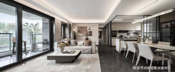 建筑上,先锋 审美流体建筑、超大玻璃幕墙和全画幅开窗视野,以及立面部分材质是铝板装饰。都为居住者带来了开阔的视野和舒适的生活体验。非对称构图和圆润的形式,为业主提供放松的情绪价值。