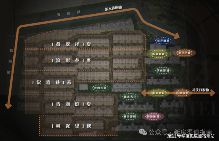 项目利用滨水环绕的特点,规划有“十大剧场、五大主题街巷”的景观概念,为业主带来尊崇感、仪式感兼备的归家体验。