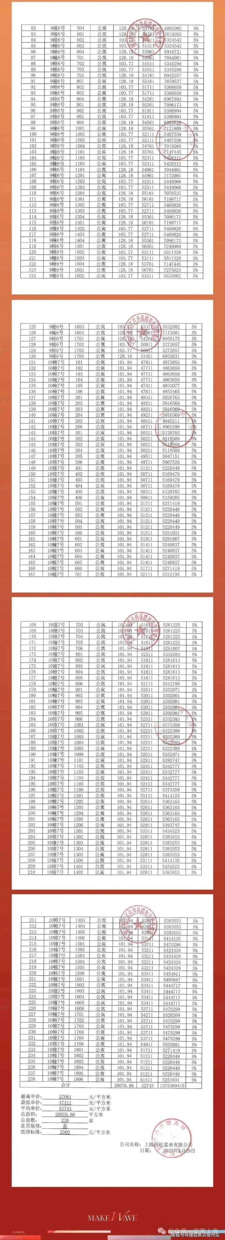 上期一房一价表如下: