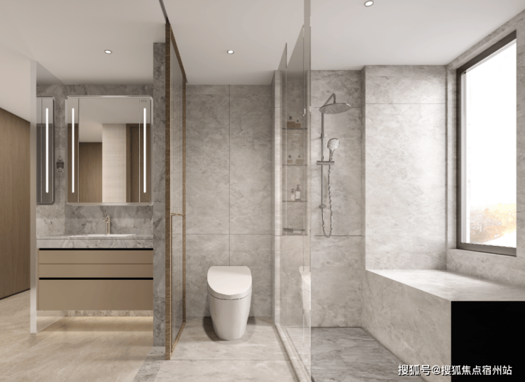 卫生间更是配备了美妆冰箱、高仪(或同档次品牌)花洒,主卫配有松下(或同档次品牌)智能一体马桶。