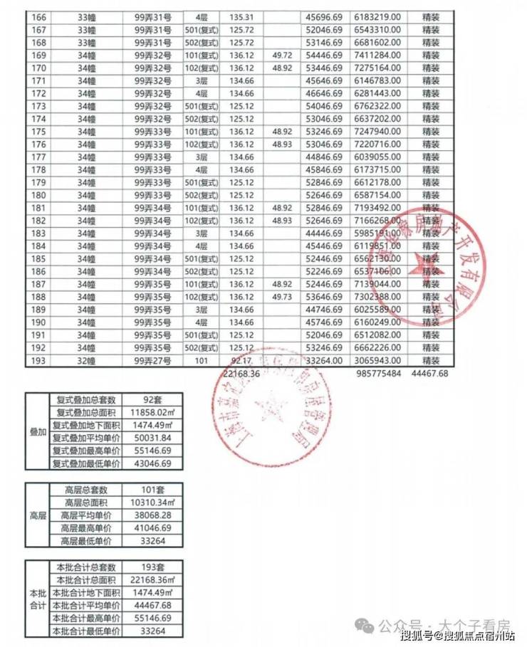 一房一价表