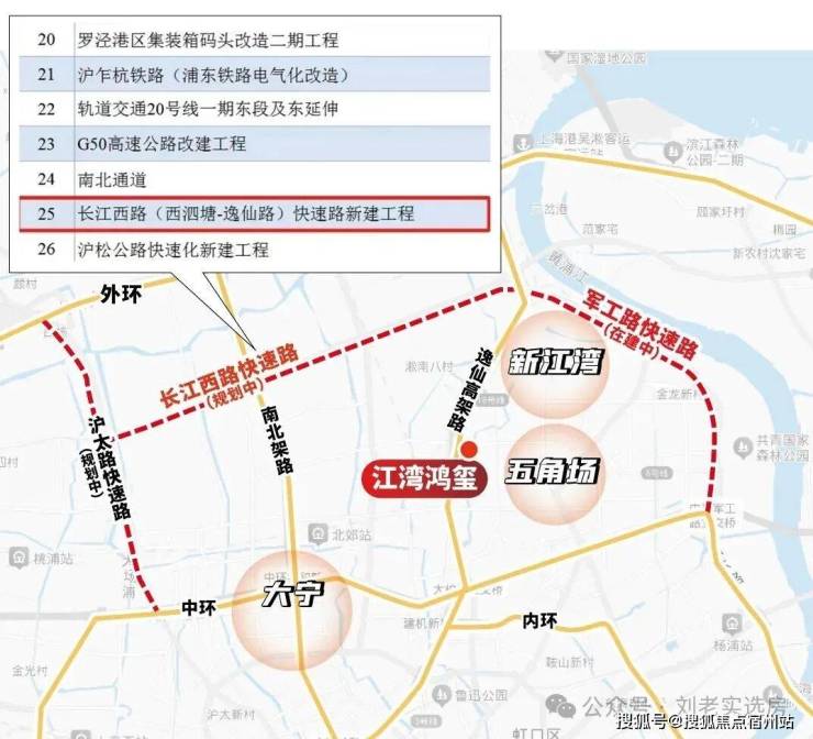 军工路快速路新建工程预计今年年内完工,意味中环北抬今年将迈出重要一步, 而长江西路快速路已被列入2025年上海市重大工程清单,预计即将开工。