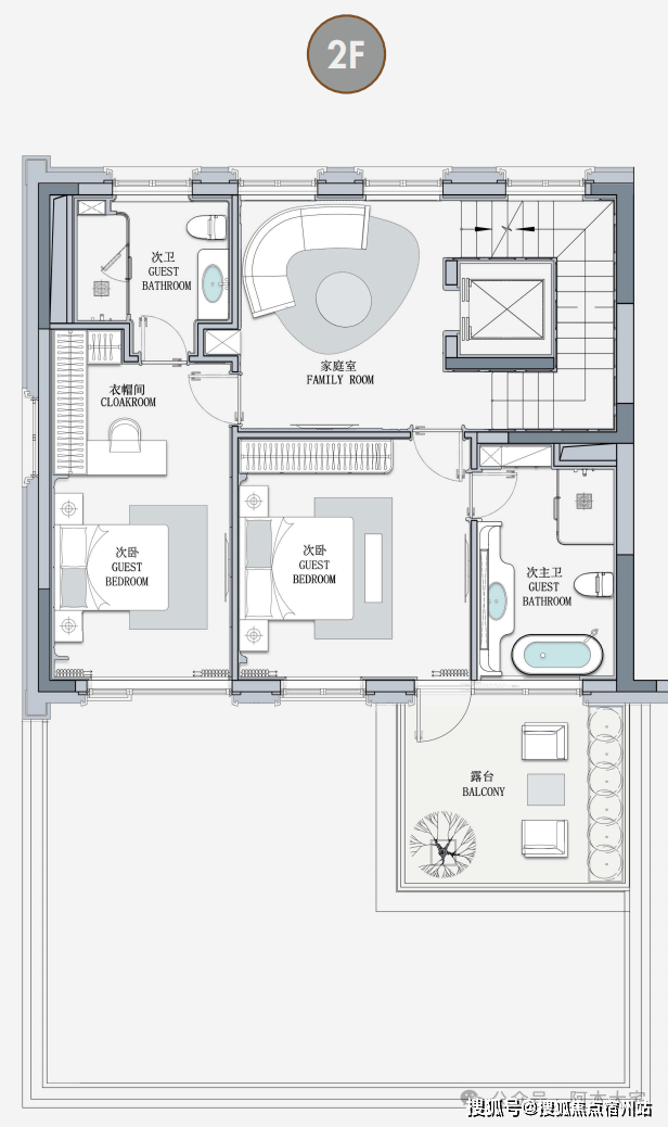 所有户型实现全卧室朝南、露台+庭院+地下三层高赠送空间,尺度奢阔,改造可能性极强。