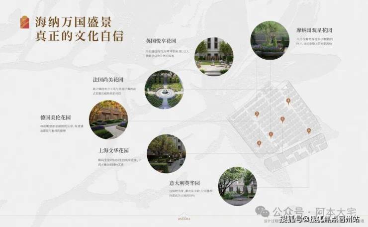 景观设计引入“六大万国花园”,汇集英式、法式、德式、意式等造园体系
