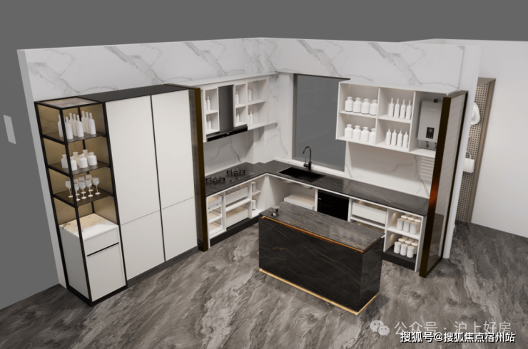 收纳空间全部都是来自博洛尼专属定制(或同等品牌),真正做到拎包入住、省去后期定制比价的烦恼;而在收纳空间之外,外滩源著在用料上同样可以称得上卷王——项目厨房台面是全进口的西班牙DEKTON品牌: