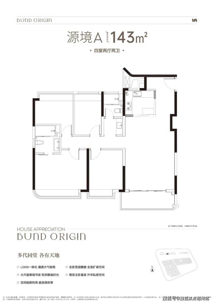 A户型是4房2厅2卫格局, 三开间朝南+LDKB一体化+全卧室带飘窗+主卧套房设计+动静分离,居住功能性更强。