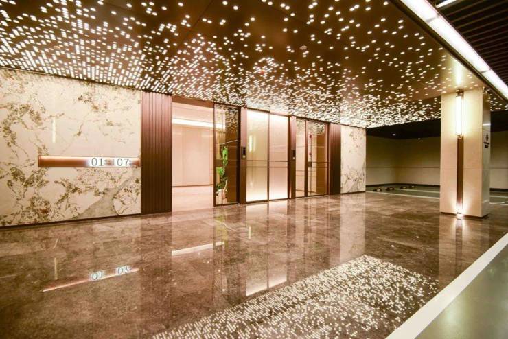 落客区做星空顶的设计,通过疏密的开孔设计,指引业主归家方向。☑️☑️陆家嘴锦绣云澜售楼处电话:400 - 8377 - 020☑️☑️