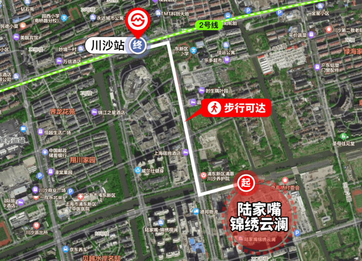 除此之外,陆家嘴锦绣云澜位于川沙首站,距离川沙站直线约750米,步行可达!(数据来源:百度地图)