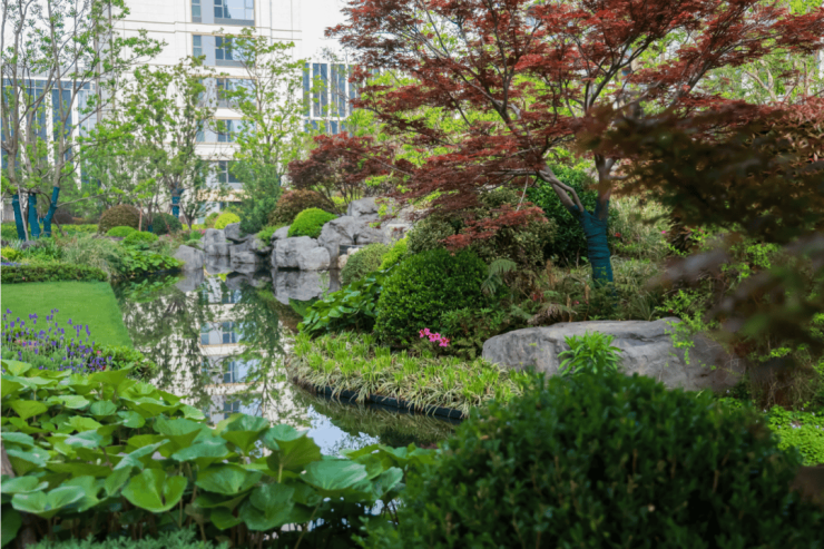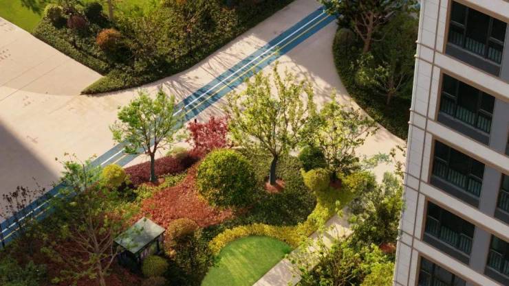 整个陆家嘴锦绣云澜以高密度绿意景观包裹整个小区,颇有一种“住在森林里”的既视感。