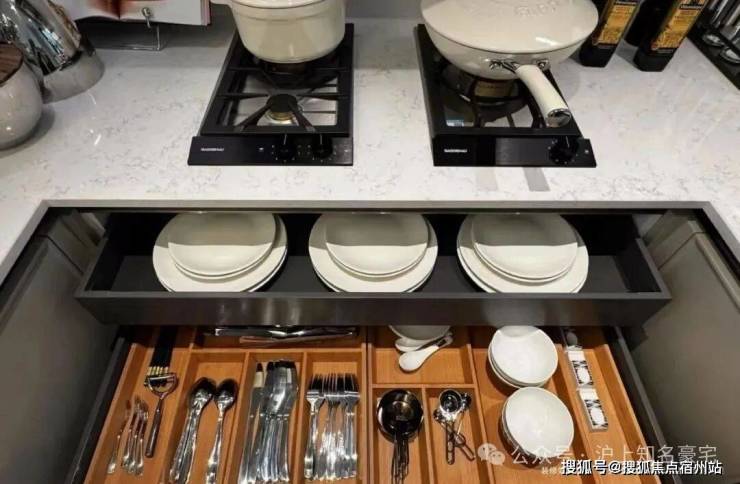为使厨房成为「真正幸福之地」,璞元在各个细微之处倾注关怀,从地柜拉篮系统,到上柜系统,再到抽屉分格系统,浅抽与深抽搭配,让整个厨房空间,既百变,又充满秩序!