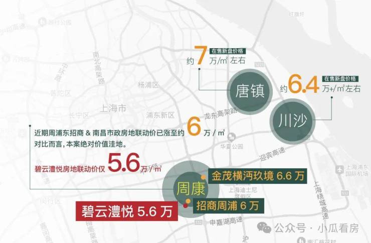 周浦地处于浦东的中心位置,承接张江科学城南扩,依托上海国际医学园区,结合北部康桥工业园,致力打造科创引领、产业发展有高度的实力城镇。周边住宅单价约6万-8万元。碧云澧悦占位周浦核心,与城市共享未来势能,房地联动价仅约5.6万元/㎡,抢占时代红利。