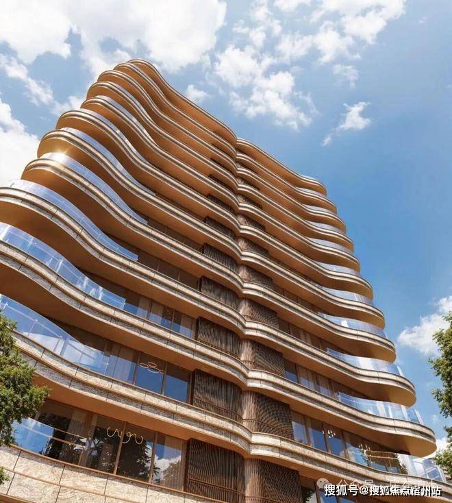 这种类似“飘带”线条,采用了进口浅色花岗岩结合金属铝板包边,形成“金镶玉”的高级感,赋予项目极强的流动感和辨识度。