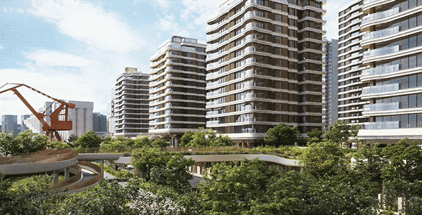 所有住宅楼栋都通过约9-22米的巨柱架空设计进行了抬高,楼栋悬浮在黄浦江畔,让每一户都能最大化地享受到临江视野和景观绿化,惬意滨江生活感满满。