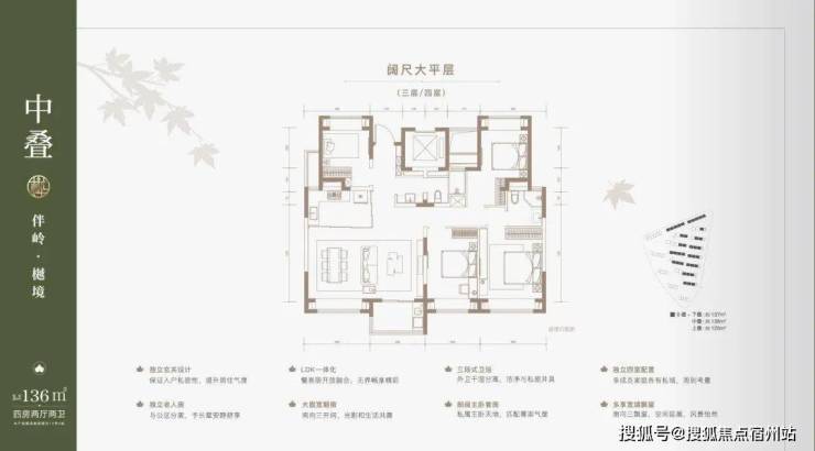 建面约137㎡下叠,四房两厅三卫全能格局,非常适合二娃家庭以及三代同堂。