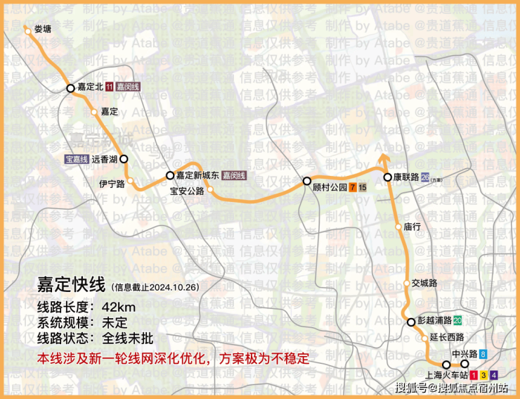 项目距离11号线嘉定新城站直线约1.7公里,算不上地铁房,但有望通过宝嘉线+嘉定快线(研究)改变这一现状,下图为可能规划中的站点