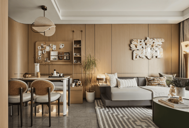仅有四栋住宅一字排开,享受开阔全景视野与充足采光。在样板房的设计上更以自然雅居理念的落地,选用的艺术纹理瓷砖、实木多层地板、墙布、窗材及钢板等,不仅饱含艺术元素,同时也有很强的耐磨抗蚀特性,具备持久耐用性。
