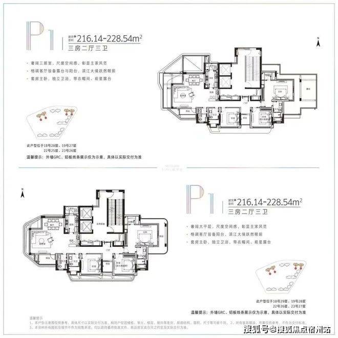 足以传世的高品质滨江大宅, 立面“波浪”造型,社区坡地规划, 约3.15米层高+高标准装修,3-4房均设置临江大面宽横厅,无不彰显滨江大宅高尚气质~