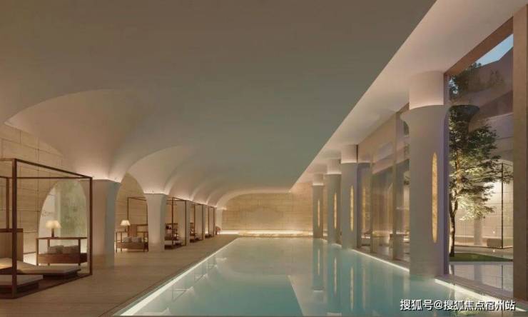 泳池会所泳池旁获得了一片新拓展出来的水景景观,空间绵延,开阔且舒展,增加了留白感仿佛化身为一座饱含诗意的“浮动水幕剧场”