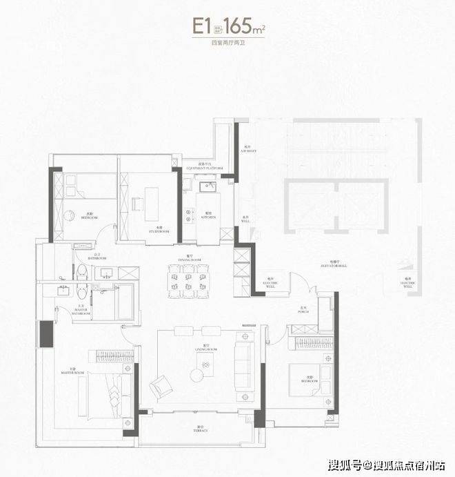 来到165㎡个户型,已经上升到上海主流的大户型改善面积段,✅✅中環置地中心望雲售楼处电话:400 - 882 - 4258✅✅但看设计思路,可以看出是为满足多胎家庭成长而服务的。