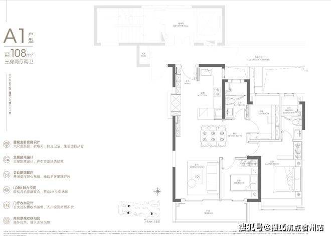 108㎡的入门级三房,起步门槛相比润府提高不少。