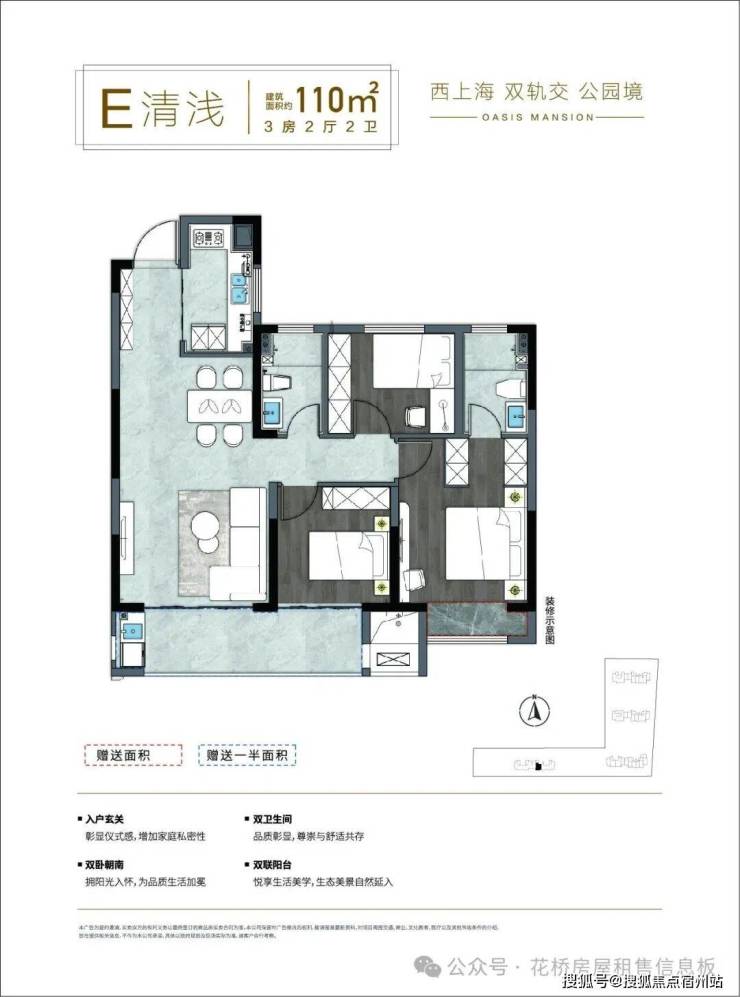 建筑面积约80㎡–110㎡装修美宅,配备新风、中央空调(“中空”建议写为全称),细节打磨品质生活。