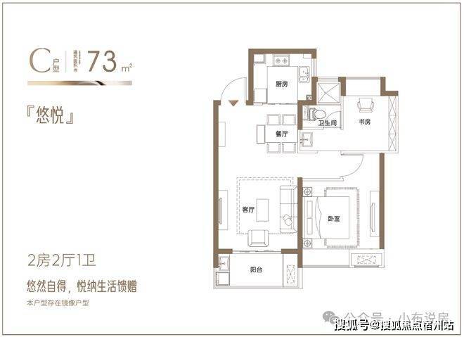 建面约73㎡悠然两房:悦纳生活馈赠