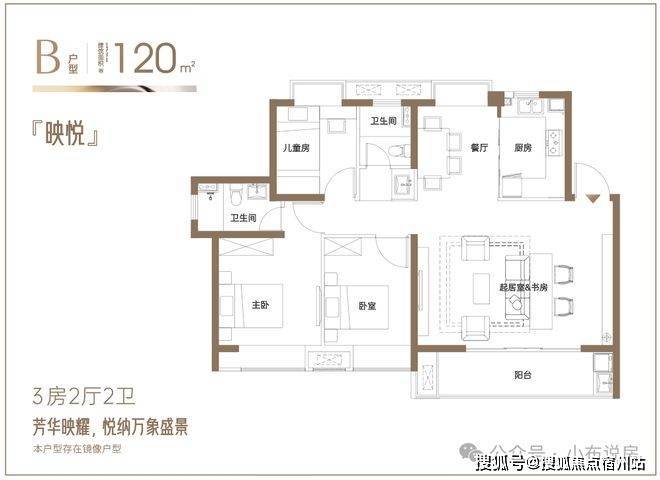 建面约120㎡改善3房:6.3米阔绰横厅