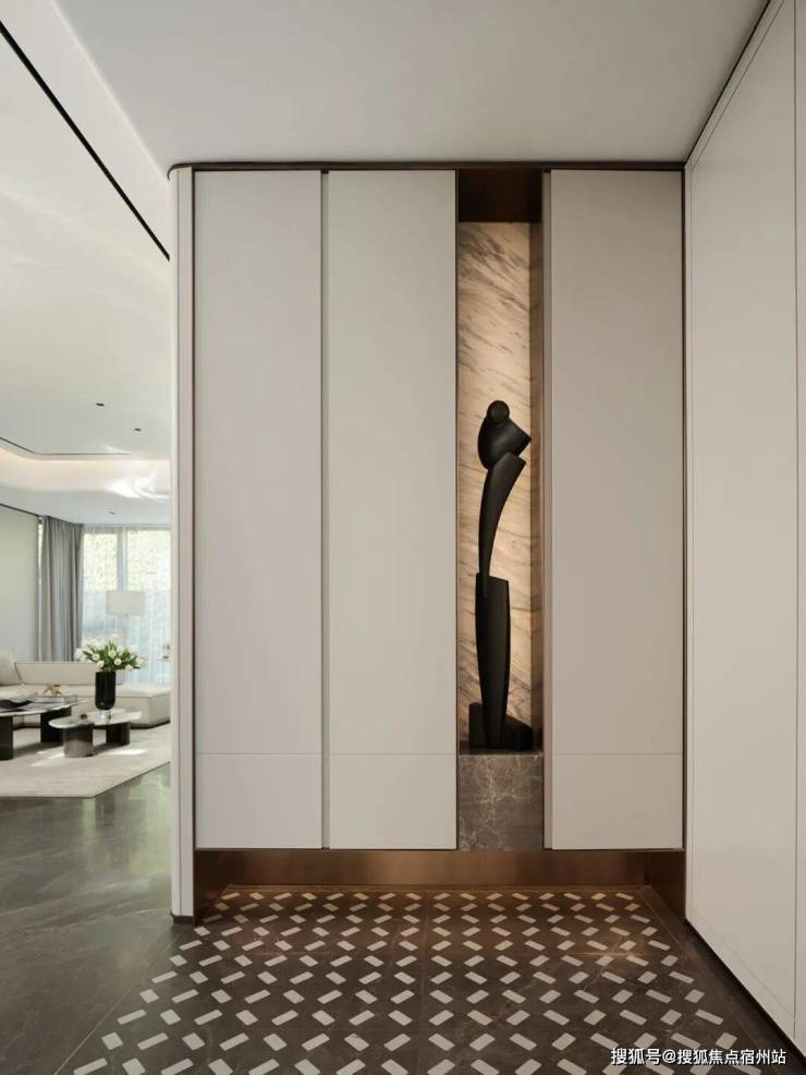 另外, 归家门厅墙面由石材镶嵌意大利毕加索奢石,地面为大理石水刀海派拼花,且入户门为定制浮雕铸铝装甲子母门,门上配有飞利浦六合一智能门锁。(实际以开发商公示为准)