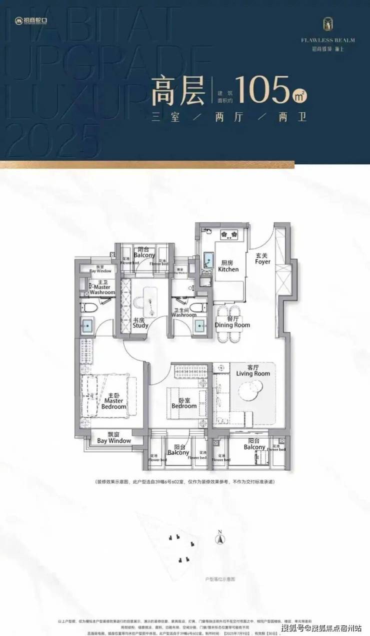 以105㎡的户型为例,“三阳台”搭配花池的设计,直接性价比拉满,按照规定:三个阳台只算一半面积,花池不算面积,加上主卧+卫生间还带飘窗(主卧飘窗非承重结构),如此算下来,对购房者而言,日常可以实打实利用到的面积是远超市面上其他三房产品。