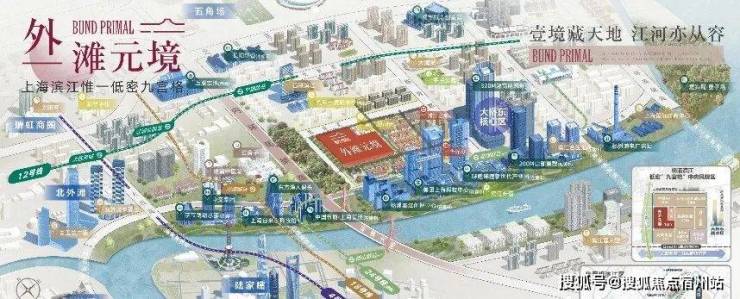 外滩元境,地处杨浦滨江大桥东侧“九宫格”内,整个九宫格区域统一规划为低密度风貌住区。外滩元境容积率1.4,也是风貌住宅用地遴选而来。