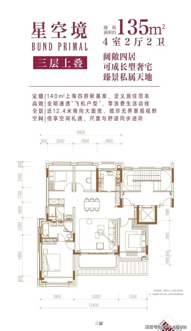主力户型客厅面宽约5.2米,即便是二三楼建面约135-140㎡4房主力户型也能有如此面宽。