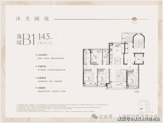 户型特点:4开间朝南,LDK一体化设计,南北通透。客厅面宽达4.3米,外接4.8米长阳台,采光通风俱佳。主卧带270°转角飘窗,主卫也有飘窗赠送。全屋飘窗设计,独立电梯厅,私密性与尊享感强。