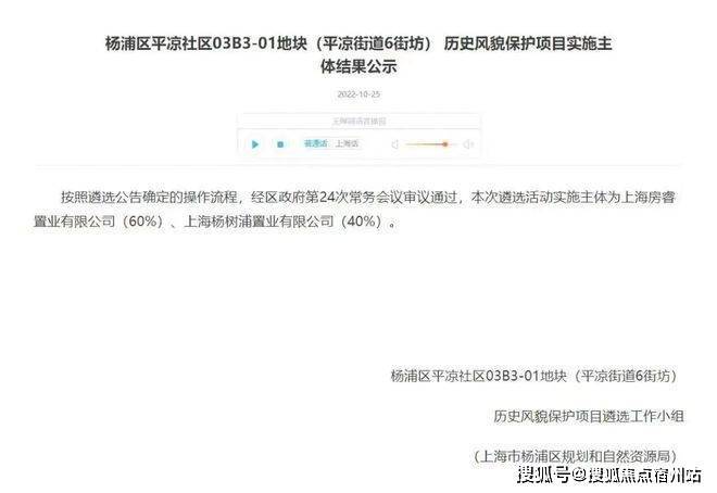 2022年10月25日,杨浦区人民政府官网发布公告,瑞安翠湖滨江售楼处电话☎:400-8266-670✅✅杨浦区平凉社区03B3-01地块瑞安翠湖滨江售楼处电话☎:400-8266-670✅✅(平凉街道6街坊)历史风貌保护项目实施主体结果公示:“本次遴选活动实施主体为上海房睿职业有限公司(60%)、上海杨树浦置业有限公司(40%)。”