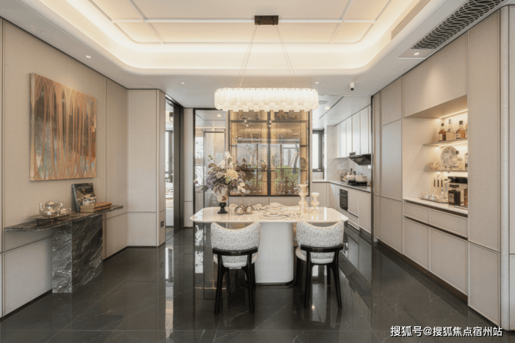 约35㎡奢阔客餐双厅 ,奢阔尺度足以容纳10人的盛宴,让大家族的温馨互动与雅仕层峯的社交宴请于此从容上演。