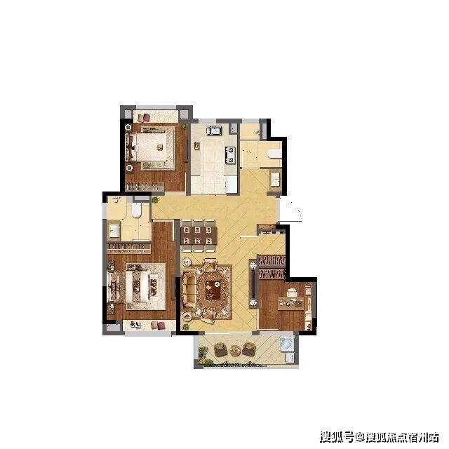 ☑️☑️上实云端售楼处电话:400-8377-020☑️☑️ 约95㎡三房两厅两卫,做到了三开间朝南+瞰景大阳台+主卧套房设计+南北通透+卫生间干湿分离,该户型得房率和空间利用率都非常高。