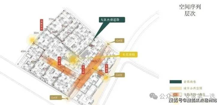 士林润园社区规划可分为蓬莱路城市公共景观以及社区内部景观两个部分,其中市政绿地衔接于上海2035城市总体规划中“蓝绿丝带”的上位条件要求,社区内部街巷空间形成空间序列形成递进的层次,将归家体验的序列依次展开,形成城市街道→入口(一级门户)→街巷→节点空间→里弄门(二级门户)→合院入户(三级门户)的方式,基本可保证大多数住户可体验到两重以上的空间递进。