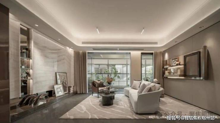 入户门厅以弧形悬浮顶棚为特色,为业主带来柔和温润的归家关怀,让归家的每一步都充满舒适与惬意。