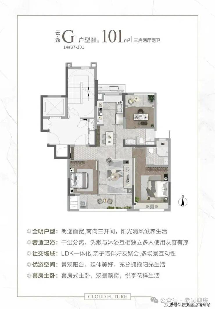91平三房两厅两卫 优惠后总价300万起101m²三房两厅两卫,高实得率户型350-430万