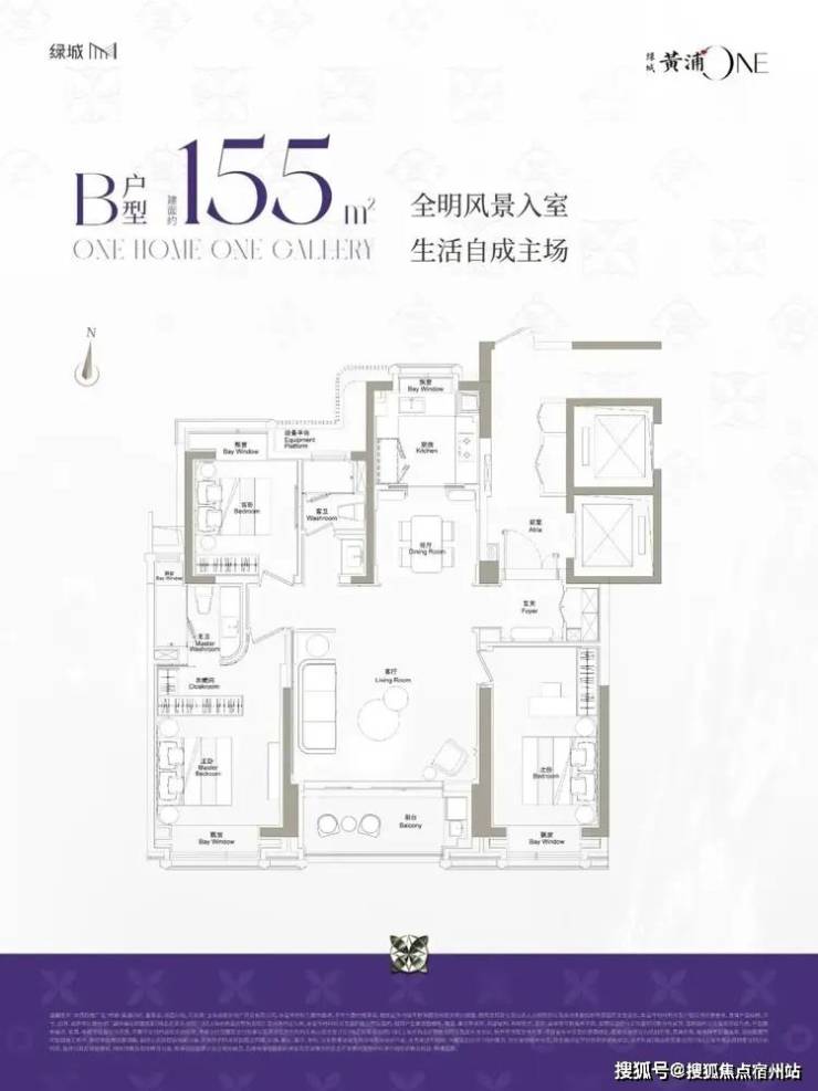 建面约155㎡轻奢三房,是年轻顶豪入门首选,总价约2310万元起,主力总价2700万左右。该户型配备专属电梯厅与独立玄关,形成从入口开始的专属过渡空间,既彰显归家仪式感,又具备充足的收纳功能。户型格局方正,三开间朝南,南向面宽约12米,中央区域为LDKB一体化设计的公共活动区,全明格局带来极佳的室内采光、通风与景观视野体验;近全飘窗设计,扩展了生活的尺度感;主卧豪华套房设计,配备独立卫浴与步入式衣帽间,兼顾私密性与居住舒适度,两个次卧尺度宽裕,可灵活适配儿童房、书房或老人房,适配三口之家的居住需求。