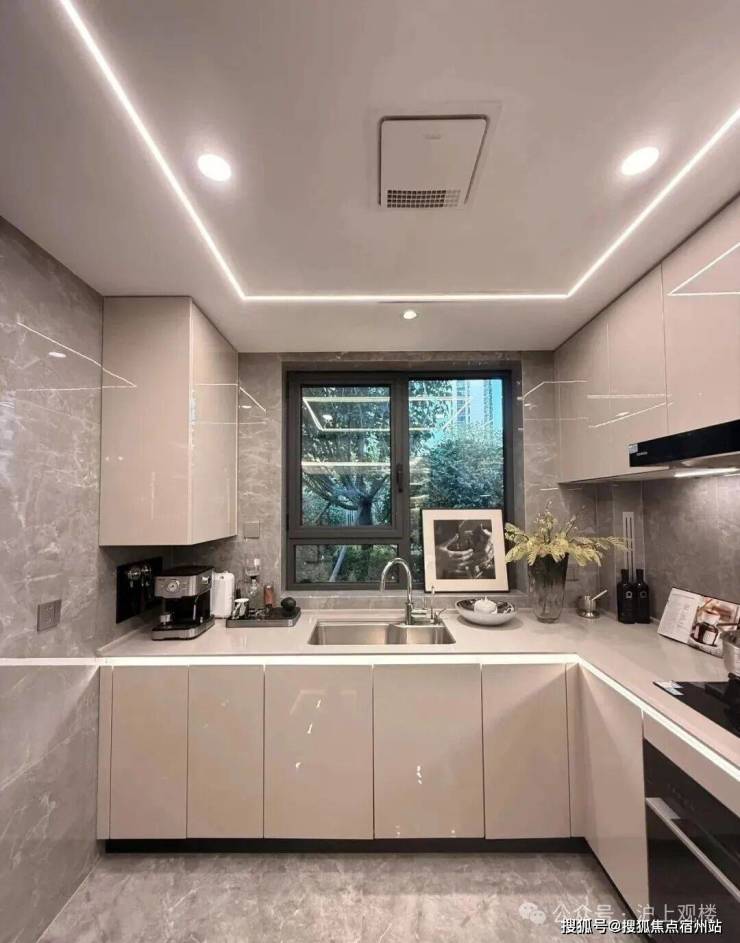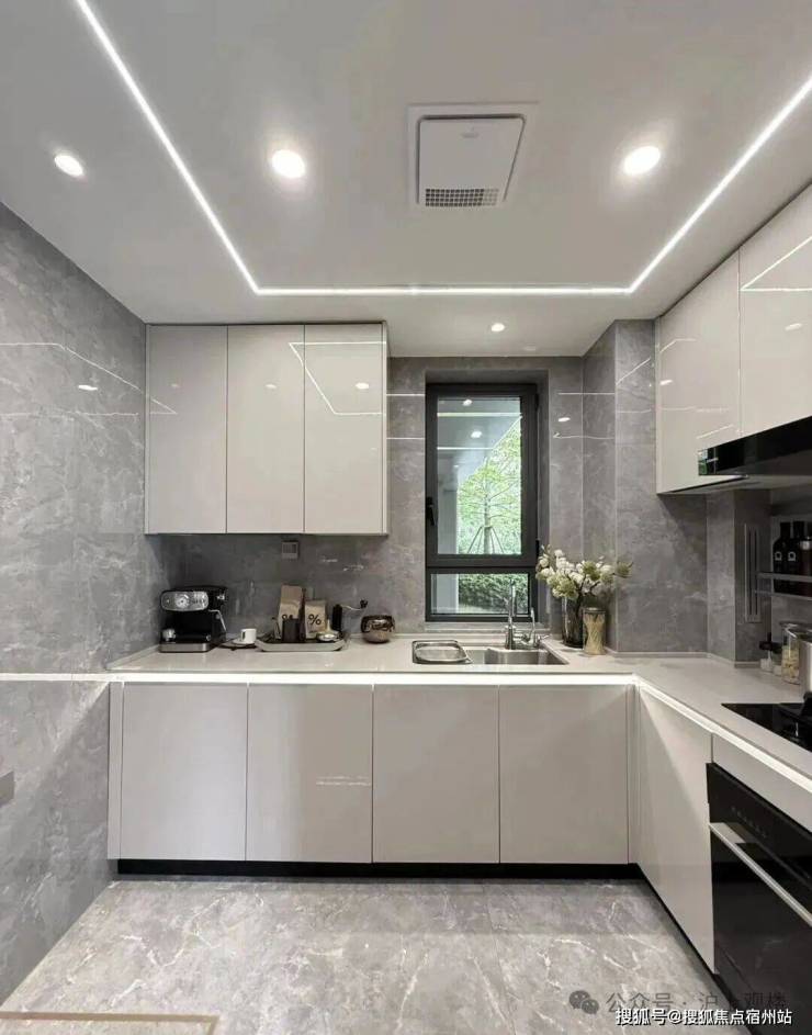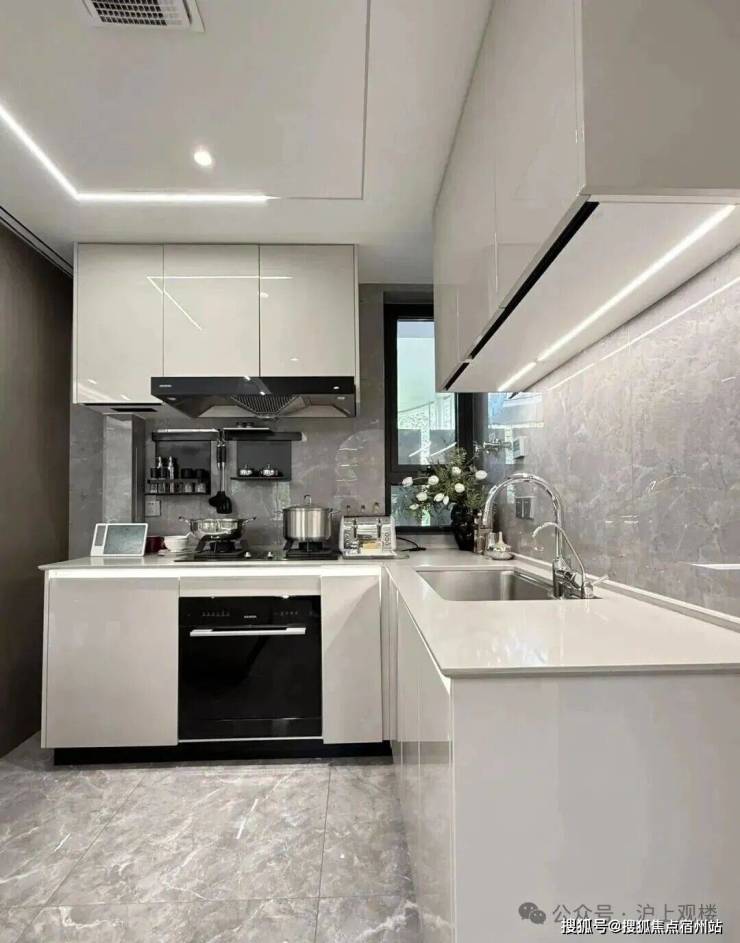 橱柜收纳系统:特别预置洗碗机点位、柜内下拉篮式设计、不锈钢挡油板、柜下操作灯、烹饪全流程功能动线一体化设计;