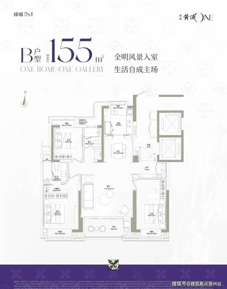 #绿城·黄浦ONE规划了一幢住宅,两个户型依次排开,规整有序,边套是约193㎡4房2厅3卫,中间套是约155㎡3房2厅2卫户型,是纯粹改善大户型社区。二期将推56套房源,上期均价170000元/㎡,等待入市!