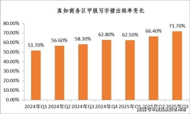真如的产业规模十分扎实。公开数据显示,2024年,中海中心跃居上海写字楼年度租赁市场成交榜首。真如商务区甲级写字楼出租率也一路攀升——从2024年一季度的51.7%,提升至2025年三季度的71.7%。
