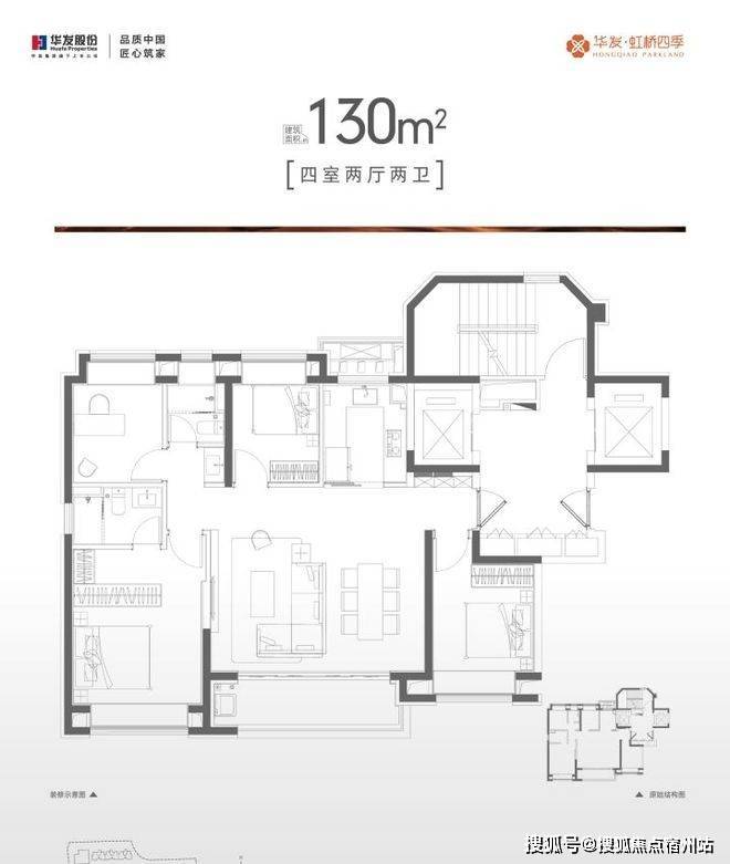 建面约130㎡的四房户型,很好地诠释了阔绰人居尺度,大虹桥为数不多的改善户型,改善一步到位!